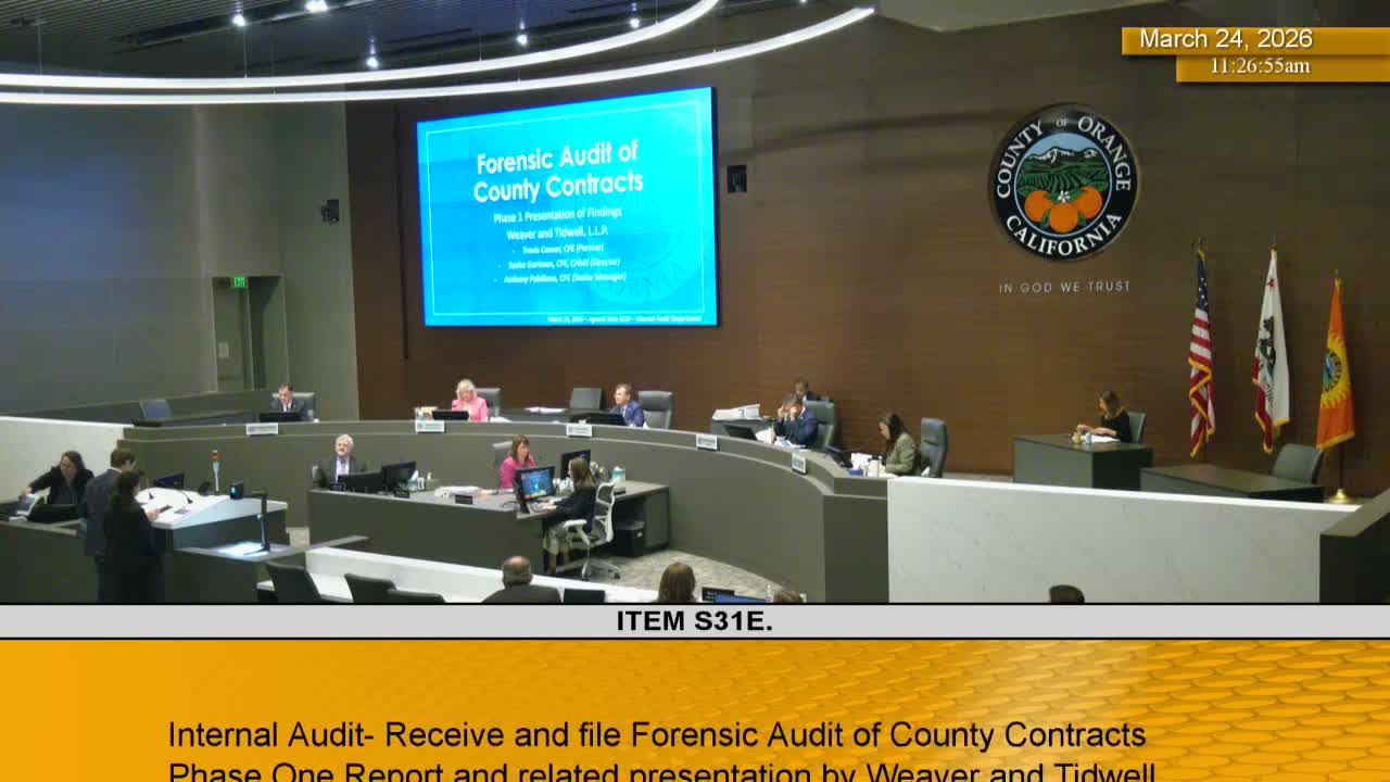 Weaver & Tidwell presented Phase 1 of a forensic audit to the Orange County Board of Supervisors on March 24, documenting procurement weaknesses and patterns the auditors say merit additional review.