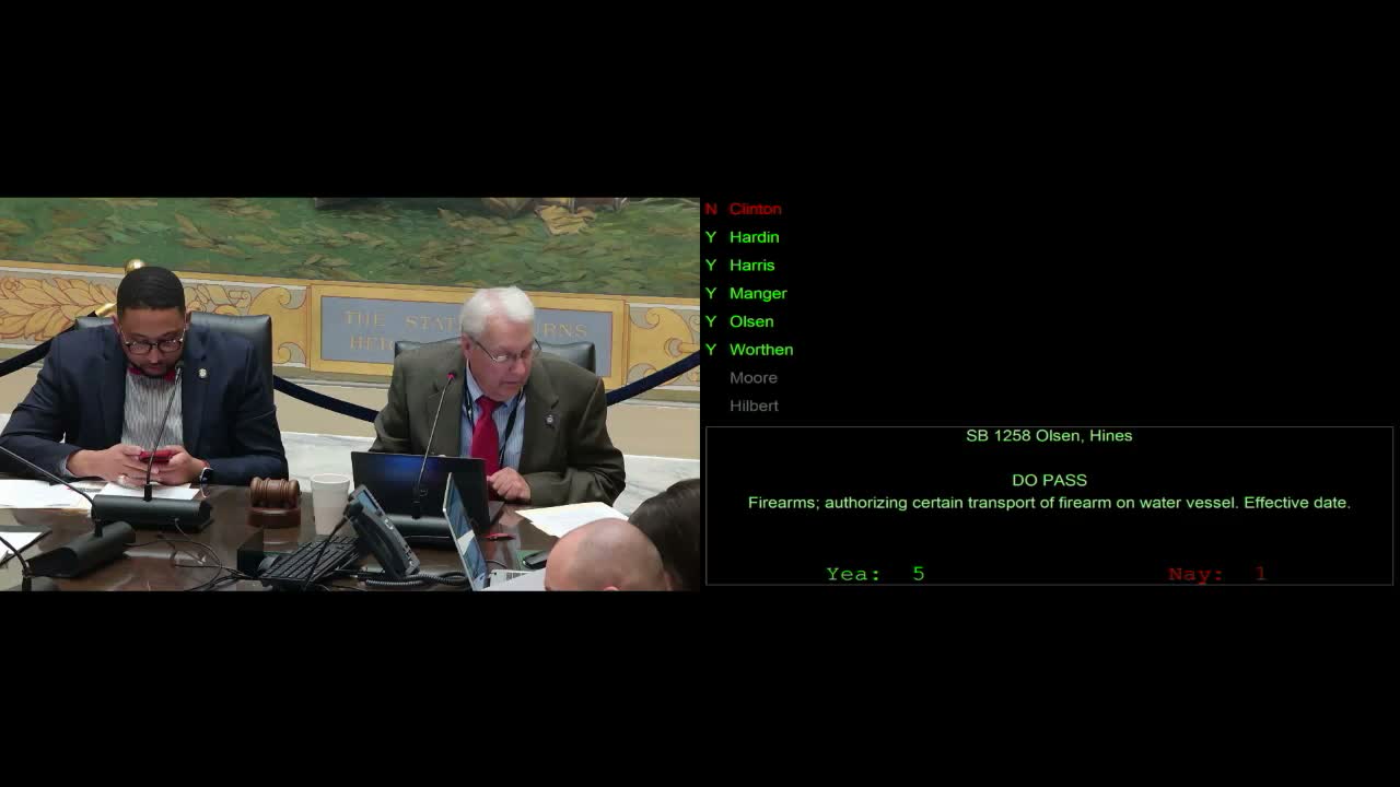 Votes at a glance: SB137 (ankle-monitoring ineligibility) — do pass; SB1255 (medical director authority for pardon/parole assessments) — do pass; SB1226 (remain-at-scene expansion to property damage, $500 misdemeanor fine mentioned) — do pass; SB1238 (domestic-assault charging modifications) — do pass; SB1258 (carry on vessel/constitutional-carry clarification) — do pass; SB1325 (GPS monitoring for certain domestic abusers) — shown as do pass with sponsor to return with amendments; SB1460 (repeat peeping/recording penalties) — do pass; SB1548 (aggregate multiple DUIs into a single felony prosecution) — do pass; SB1730 (forward abuse reports to OSBI) — approved (committee tally 4–2); SB1921 (raise OSBI fees) — approved (tally reported as 6 ayes); SB1733 (school reporting modifications) — do pass; SB1216 (drug-court eligibility changes) — do pass; SB1256 (interlock condition of bail) — do pass.