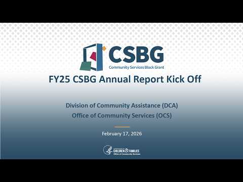 The Office of Community Services (OCS) opened its fiscal year 2025 Community Services Block Grant (CSBG) annual-report kickoff webinar by laying out submission expectations, technical resources and review timelines for states, tribes, territories and eligible entities.