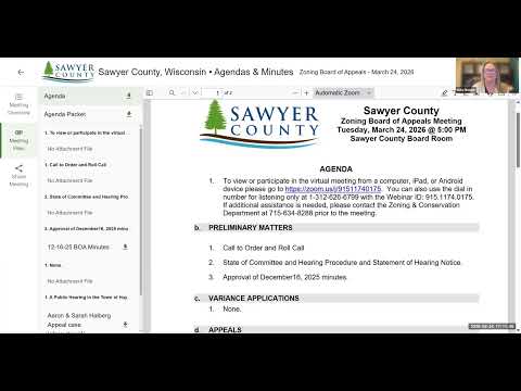 The Sawyer County Board of Appeals voted on March 24, 2026, that Aaron and Sarah Hallberg were not "persons aggrieved" and therefore the board did not have jurisdiction to hear their appeal of a zoning administrator's decision regarding a neighboring property.