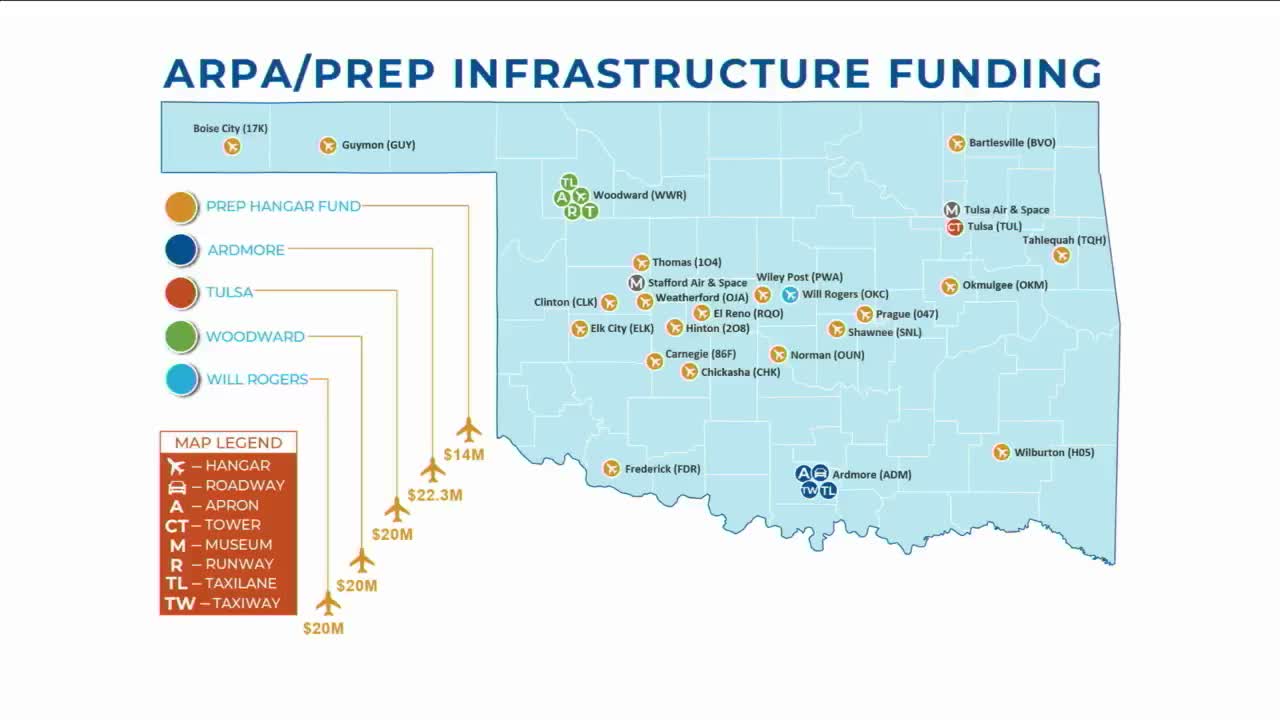 Director Artis told a legislative oversight panel that PREP and ARPA investments have driven roughly $400 million into Oklahoma aerospace and defense, and outlined progress and remaining work on hangars, airport upgrades, UAS test ranges and repurposed Lufthansa funding for local projects.