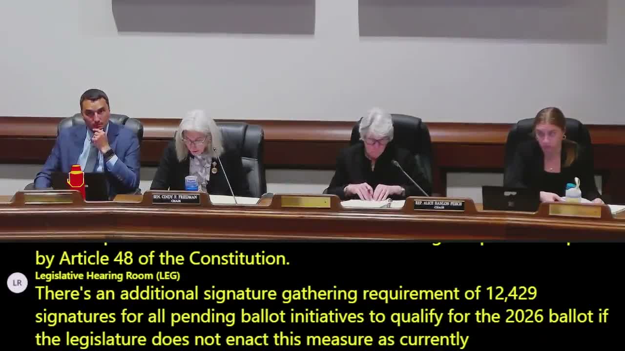 Sen. Cindy Friedman, the Senate chair of the committee, opened the hearing and explained the process under Article 48 of the Amendments to the Constitution of the Commonwealth and the additional signature threshold (12,429 signatures) required for measures to reach the 2026 ballot if the Legislature does not enact them.