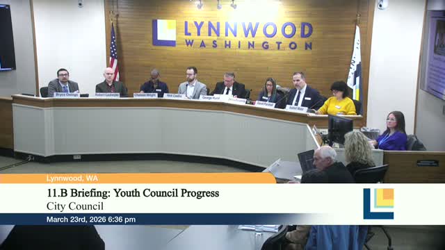 Parks and Recreation staff briefed council on a new Lynnwood Youth Council: recruitment is underway for 15 members ages 14-19, outreach to four of five area high schools has begun, and council asked staff to clarify the $10,000 earmark and other program supports.