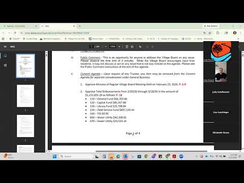 The board asked organizers to explore directing guests to south‑side parking (including Village Hall and Bourbon Street lots) and to consider paid private security or volunteer staffing to enforce reserved spaces if police staffing is not feasible. Trustees set a follow‑up special meeting to finalize the traffic plan before the event.
