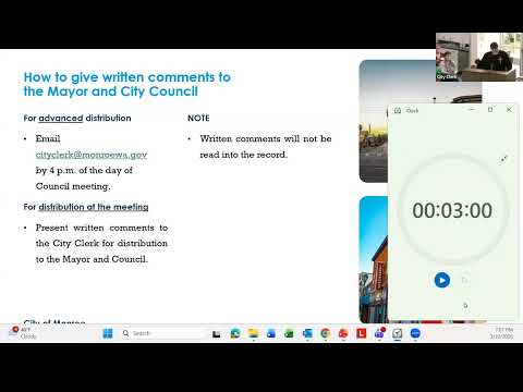 Public comment at the March 10 Monroe City Council meeting featured both property owners urging R7 pre‑zoning for the Davis parcels and residents opposing change and raising neighborhood impacts, while residents of Friendship House described chronic loud‑music and smoke problems and asked the city for help.
