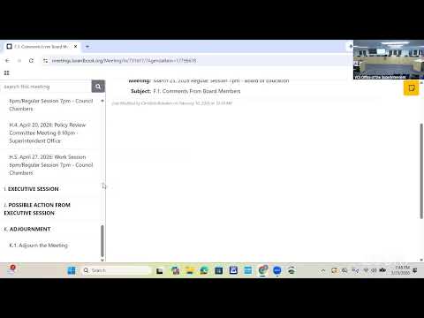 The reports that framed the budget discussion also included updates on facilities projects and staffing: the front entrance and new district office configuration at Herman Hutchins Elementary School are operational, the VHS audio-visual project is complete, and the district remains actively recruiting teachers.
