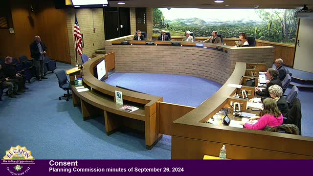 The El Cajon Planning Commission voted to recommend city council approve zoning-code amendments to reflect new state housing laws (ministerial approval for up to 10-unit infill projects, expanded ADU allowances, limits on replacement parking) and revisions to the downtown master plan that would permit two small bars (up to 2,500 sq ft) in specified frontages, while urging council to note concerns about potential crime impacts.