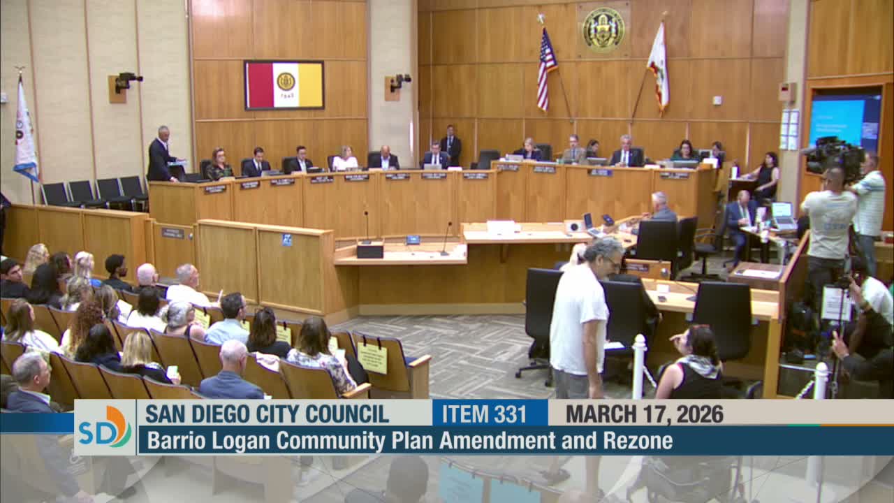 Community members, environmental advocates and the Barrio Logan planning group supported the change, telling council the revisions safeguard long‑standing community priorities and help protect residents from polluting uses next to homes. Chicano Park stewards asked for direct consultation with the park steering committee; staff said it had verified the rezone would not reduce park boundaries but acknowledged the committee wished to meet and staff will do so.