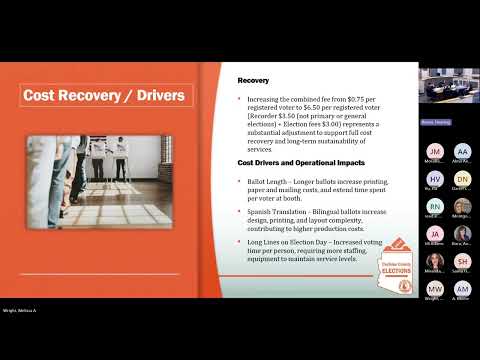 Melissa Avant, Cochise County elections director, told the board the county currently uses a bundled contract that effectively charges about 75¢ per registered voter under the county contract, with an $800 minimum and a $250 cancellation fee, and covers poll workers, equipment delivery and ballot production. "My recommendation would go to $3 per registered voter that would help with the long term sustainability and cost recovery efforts," Avant said during the work session.