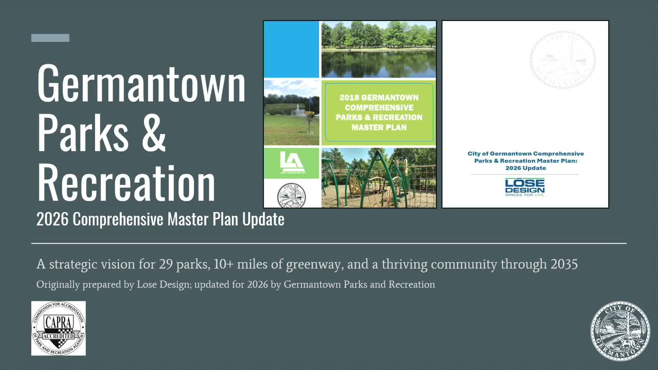 The Board of Mayor and Aldermen adopted the 2026 Germantown Comprehensive Parks and Recreation Master Plan update on March 23, endorsing a multi‑tiered roadmap for park investments over the next decade.