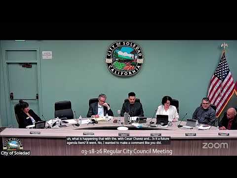 A written public comment read into the Soledad City Council meeting asked the city to remove the Cesar Chavez Park sign and consider renaming the park for Dolores Huerta or "other survivors of Cesar Chavez." The comment, submitted by Adriana Ramelli and read by staff, said the writer grew up in Soledad and urged the council to "do the right thing."