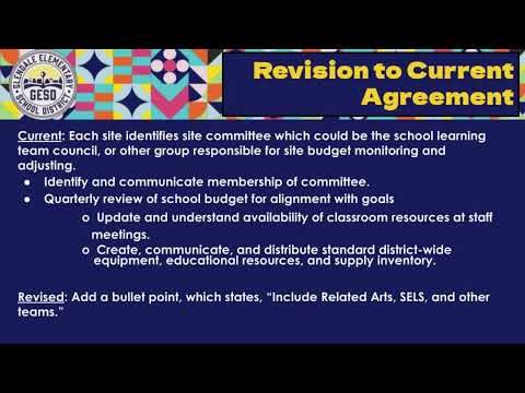Burnaby described several revisions and new commitments in the agreement. She said the district clarified site-committee language so each school’s identified committee — whether a site learning team, council or other body — will include related-arts and other teams when monitoring budgets, inventory and alignment with goals. "Our committee has revised this to add a bullet point which states include related arts, sales, and other teams," Burnaby said.