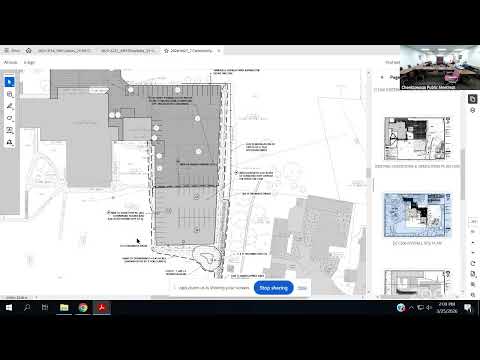 On new business, the Chair introduced an application from 7 Community Drive seeking retroactive approval "for a parking lot expansion that was constructed without consent to the town." The Chair said roughly "30 28 . . . 40 parking stalls" were added and that the unpermitted work has produced drainage runoff affecting nearby residential backyards. A committee member who visited the site described yards that "flooded the neighbors out" when warm days combined with rain and reported the applicant moved piled snow after complaints.