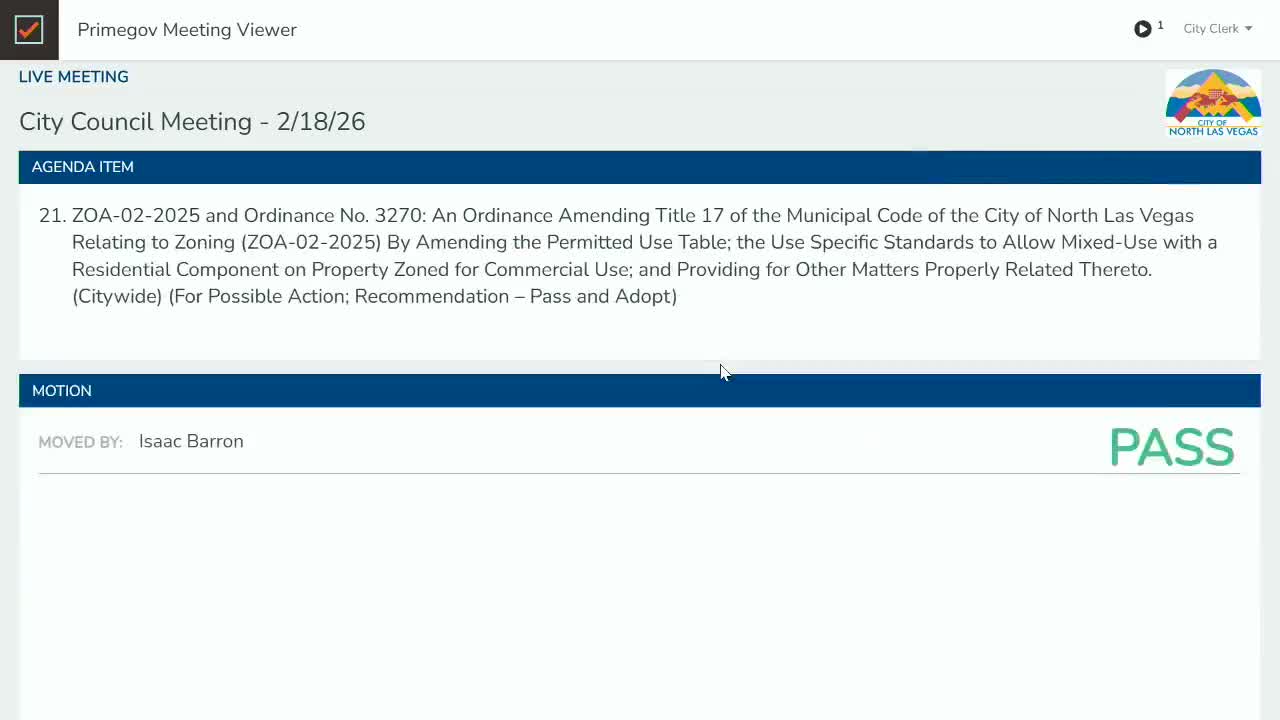 At a Feb. 18 status check on the Villages of Tule Springs Regional Park, the master developer said contractors made substantial cleanup progress, parks staff confirmed debris removal and turf work, and the council asked staff to return with an update in 30 days; staff said remediation is privately funded and restroom testing remains pending.