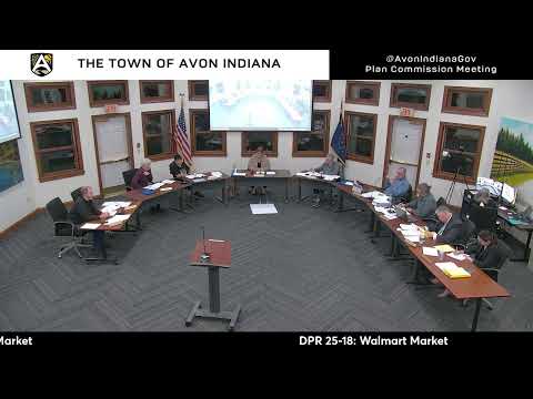The Avon Advisory Plan Commission approved DPR 2518, allowing a roughly 50,000 sq ft Walmart Market on Avon Avenue, but added a condition requiring a revised traffic study and final DPW approval of a proposed roundabout and related roadway changes after residents and the fire chief raised safety and construction concerns.