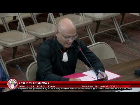 Chair opened a continued public hearing on Resolution 144-38, which calls for withdrawing the draft 2025 programmatic agreement and the 2008 programmatic agreement and restoring full implementation of Section 106 of the National Historic Preservation Act for Department of Defense undertakings on Guahan. The measure drew testimony from the Guam State Historic Preservation Officer and nearly a dozen preservation professionals, residents and advocates.