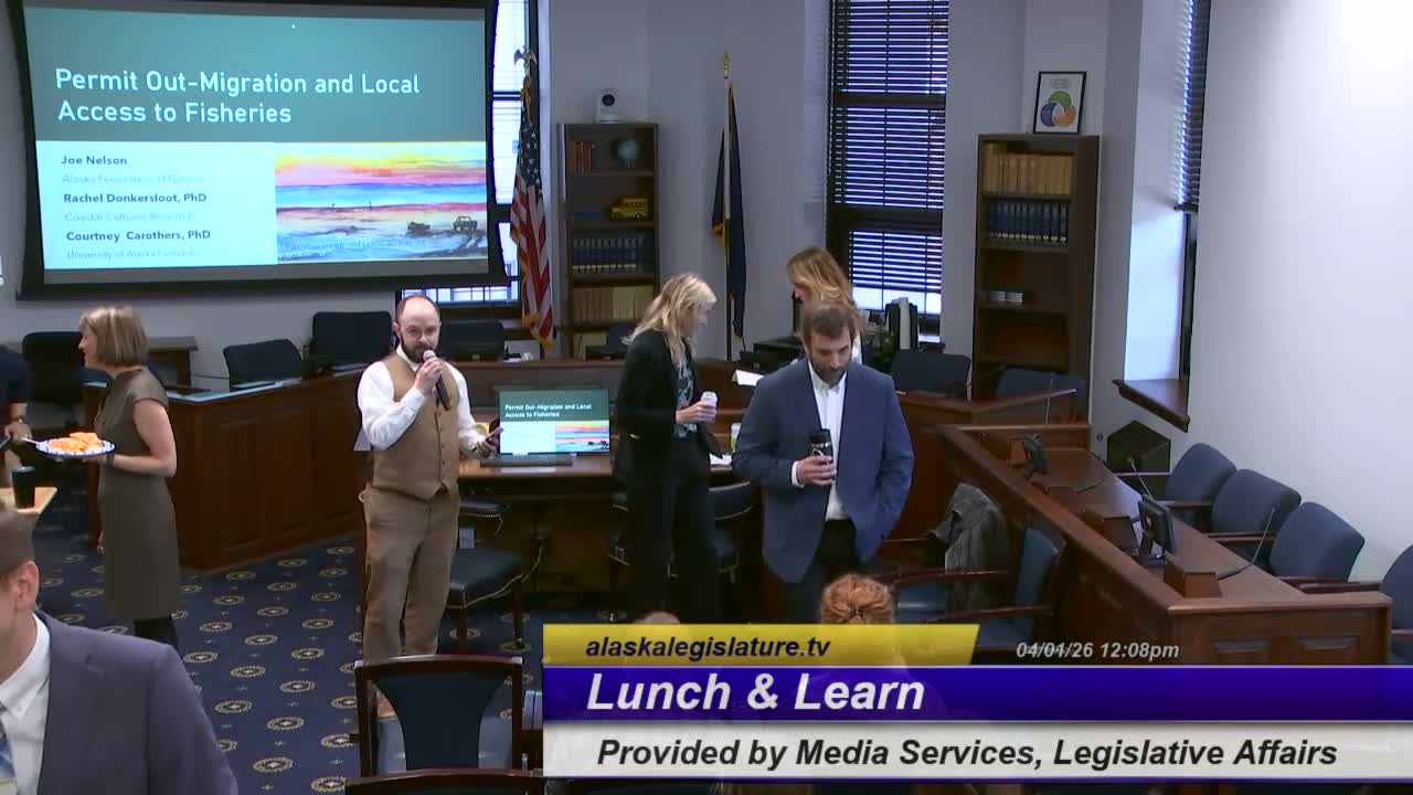 At a Capitol lunch‑and‑learn, Joe Nelson, cochair of the Alaska Federation of Natives, and University of Alaska researchers presented data showing decades of local permit loss under Alaska’s transferable limited‑entry system and outlined policy options to slow out‑migration and restore community access.