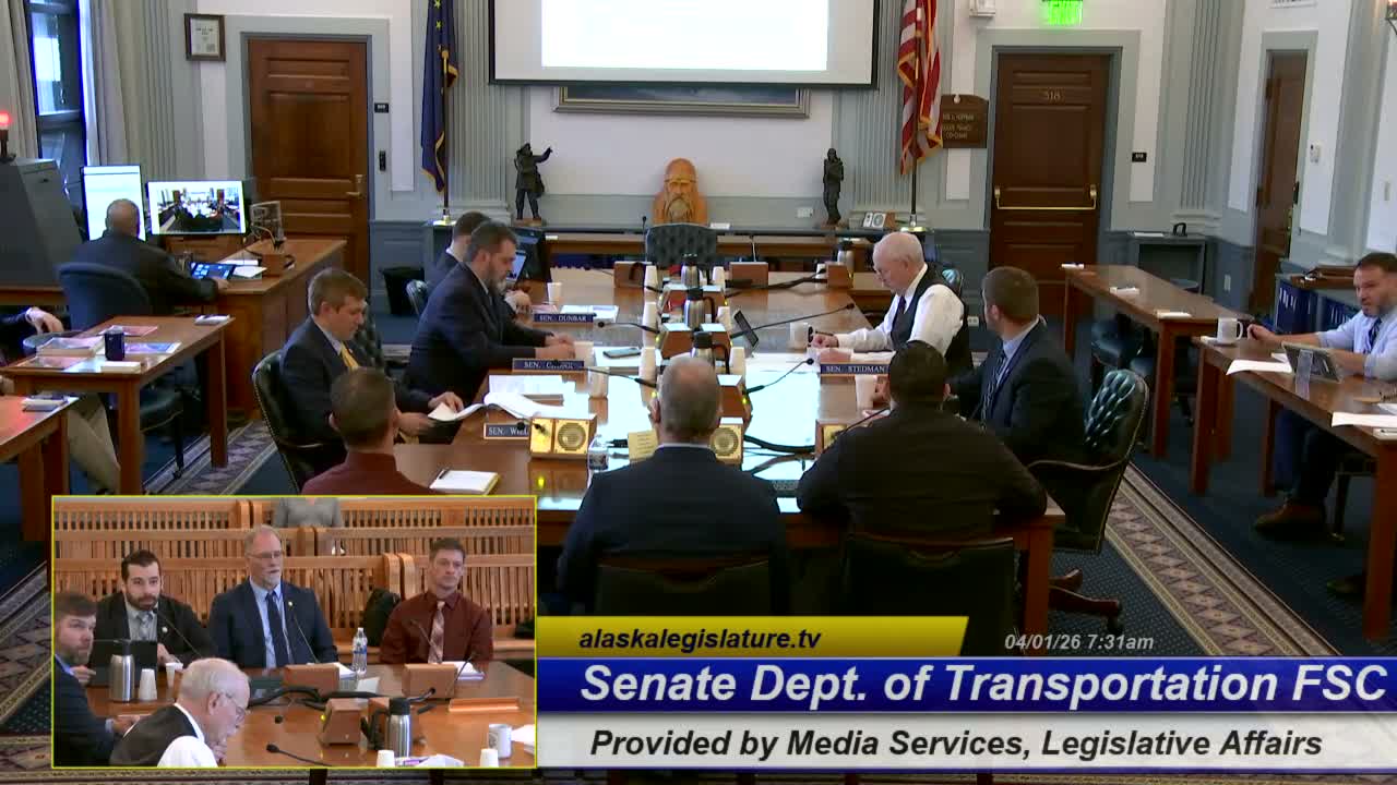 DOT officials said they would provide follow-up information requested by the committee, including residency counts for DOT employees (separating Marine Highway staff), the equipment replacement schedule, and more precise estimates of expected federal reimbursements tied to recent disaster response efforts. The subcommittee did not take a formal vote on the budget request; DOT’s requests will be incorporated into the committee’s ongoing budget review process.