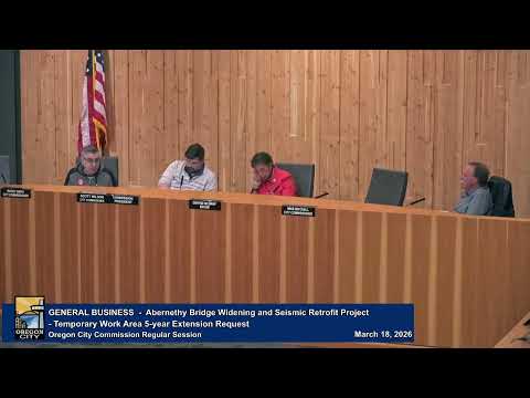 The Oregon City Commission heard a detailed update and robust public comment Wednesday on a request from the Oregon Department of Transportation (ODOT) for a five-year extension of temporary work areas in John Storm Park and Sportcraft Landing tied to the Abernathy Bridge seismic retrofit and widening project.