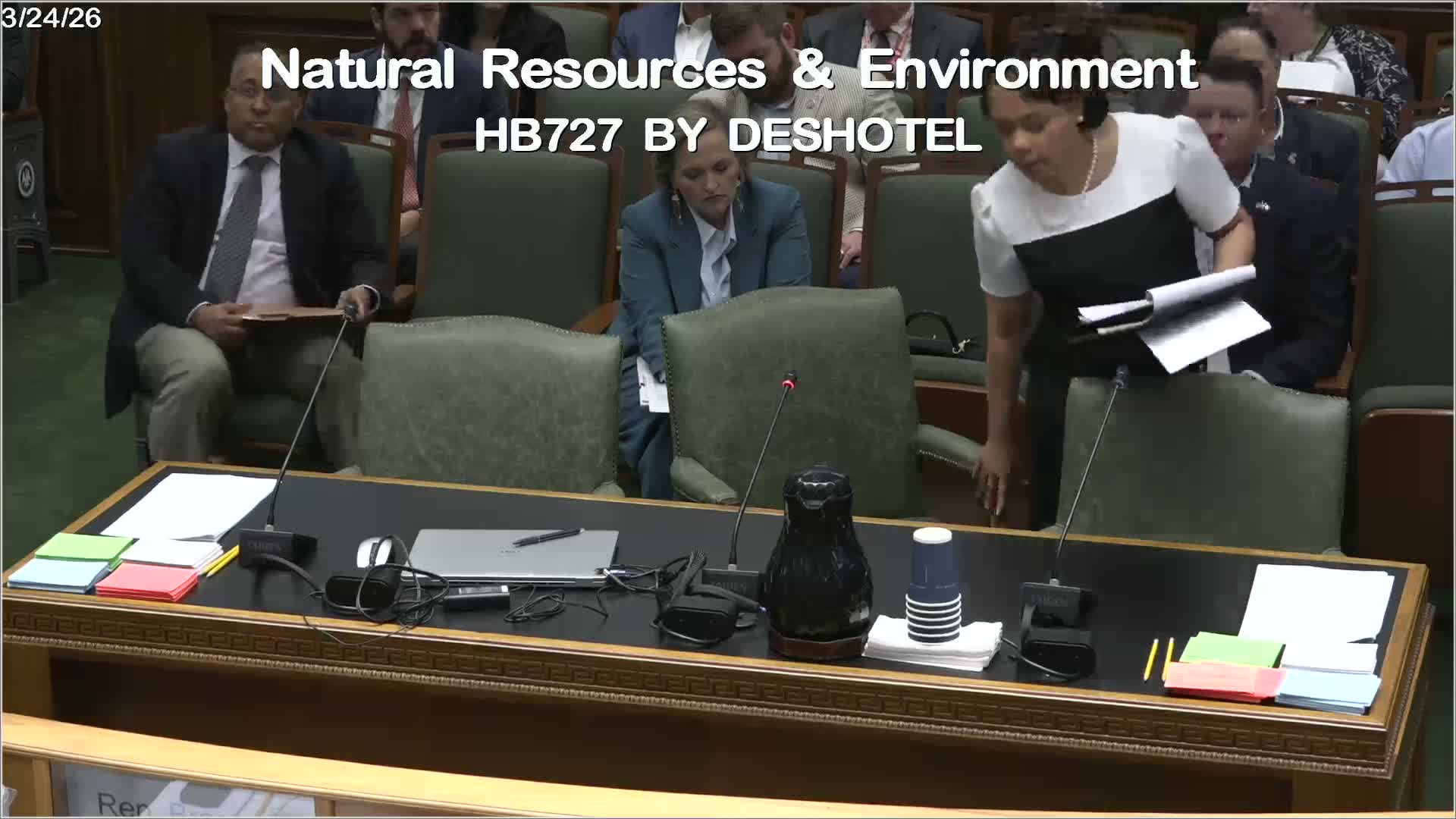 Secretary Courtney Burdett told the House Natural Resources Committee that LDEQ is modernizing permit intake with an online portal, coordinating cross‑agency responses to spills, and responding to roughly 8,000 citizen calls last year; the committee reported HB 6 97 favorable after Q&A about tire dumps and waste‑tire funds.