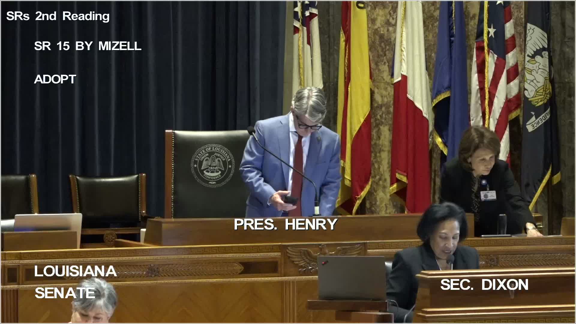 Louisiana Senate adopts condolence and commemorative resolutions, advances many bills to third reading