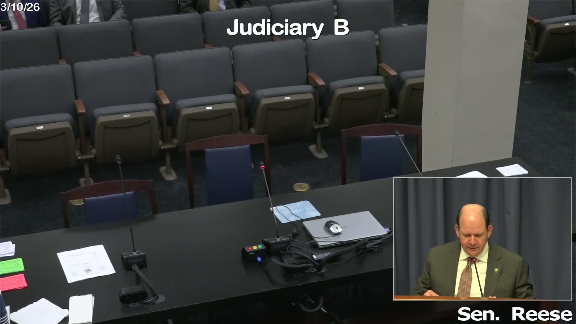 The Senate Judiciary B committee on March 10 reported Senate Bill 164 favorably; sponsor Senator Patrick McMath said the measure would expand the definition of 'first responders' to include public works employees who handle disaster cleanup and emergency infrastructure tasks.