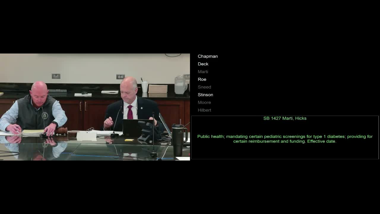 Vice Chair Marty, presenting the Diabetes Caucus’s top request for the session, said the bill would encourage more doctors to test for type 1 diabetes earlier so children are not diagnosed only after life-threatening diabetic ketoacidosis sends them to an emergency room. “We’re just trying to get more doctors, some federal funding, and more doctors aware and testing for this,” the presenter said.