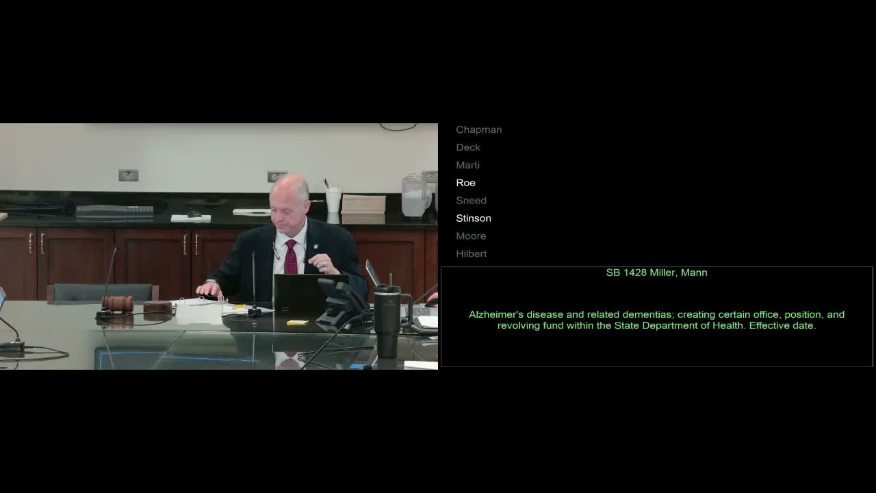 The bill’s presenter told the committee the measure would put one person in the Department of Health to connect services for Alzheimer’s and related dementias. “We have 70,000 people in Oklahoma with Alzheimer’s right now,” the presenter said, pressing the need for better coordination.