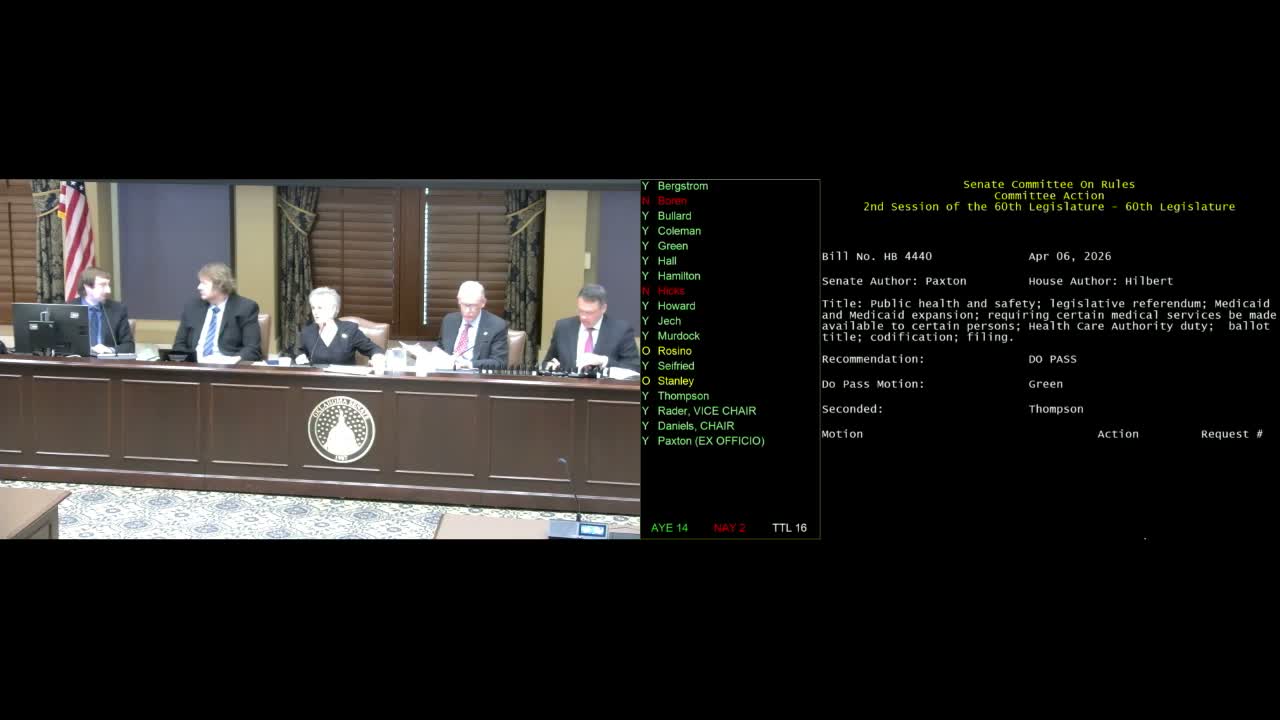 The Senate Rules Committee approved two state-question measures related to tax incentives and contingency planning for Medicaid expansion.