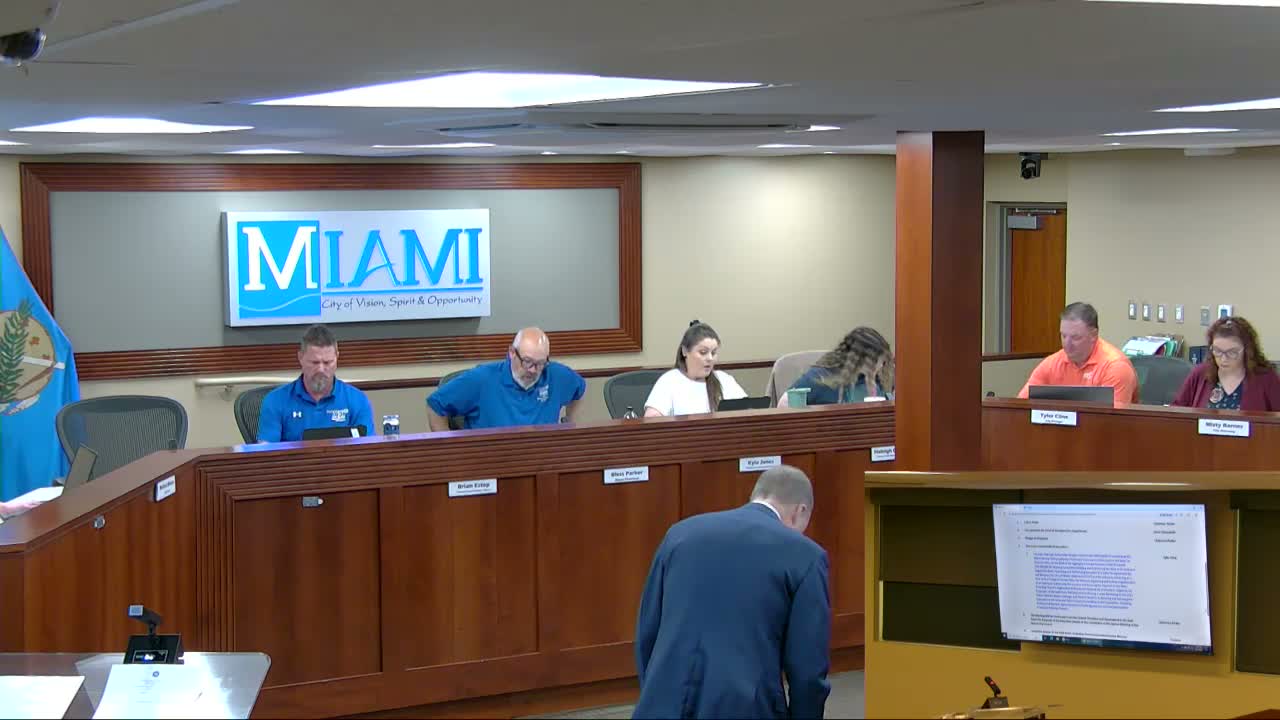 The Miami City Council approved a resolution allowing the Miami Special Utility Authority to issue up to $14.2 million in utility-system and sales-tax revenue notes to finance fiber infrastructure, advanced metering (AMI) meters and water-plant repairs and to ratify a related lease; the transcript records affirmative votes by Parker, Jones and Barnes but does not include a full roll-call tally.