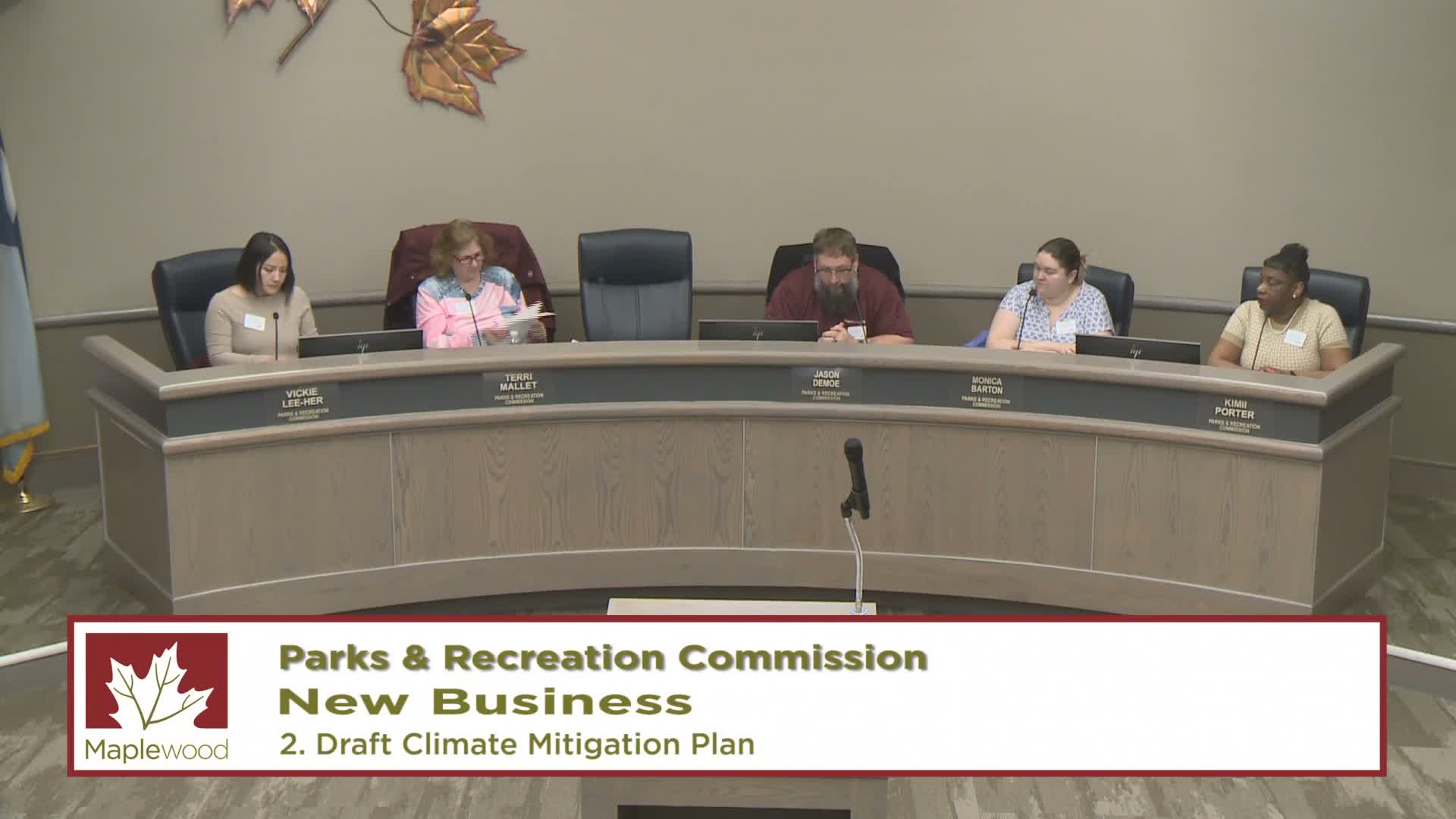 At its meeting the Maplewood Parks & Recreation Commission reviewed and refined its 2025 goals for adoption in 2026, consolidating overlapping objectives and adding an explicit objective to tour the Maplewood YMCA Community Center.