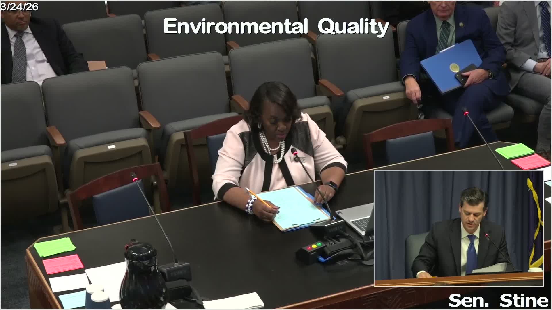 Sen. Barrow deferred Senate Bill 332 after outlining concerns about statewide blight from discarded tires and saying she will work with DEQ to track where tire‑surcharge funds go and to vet incentive‑based disposal options.