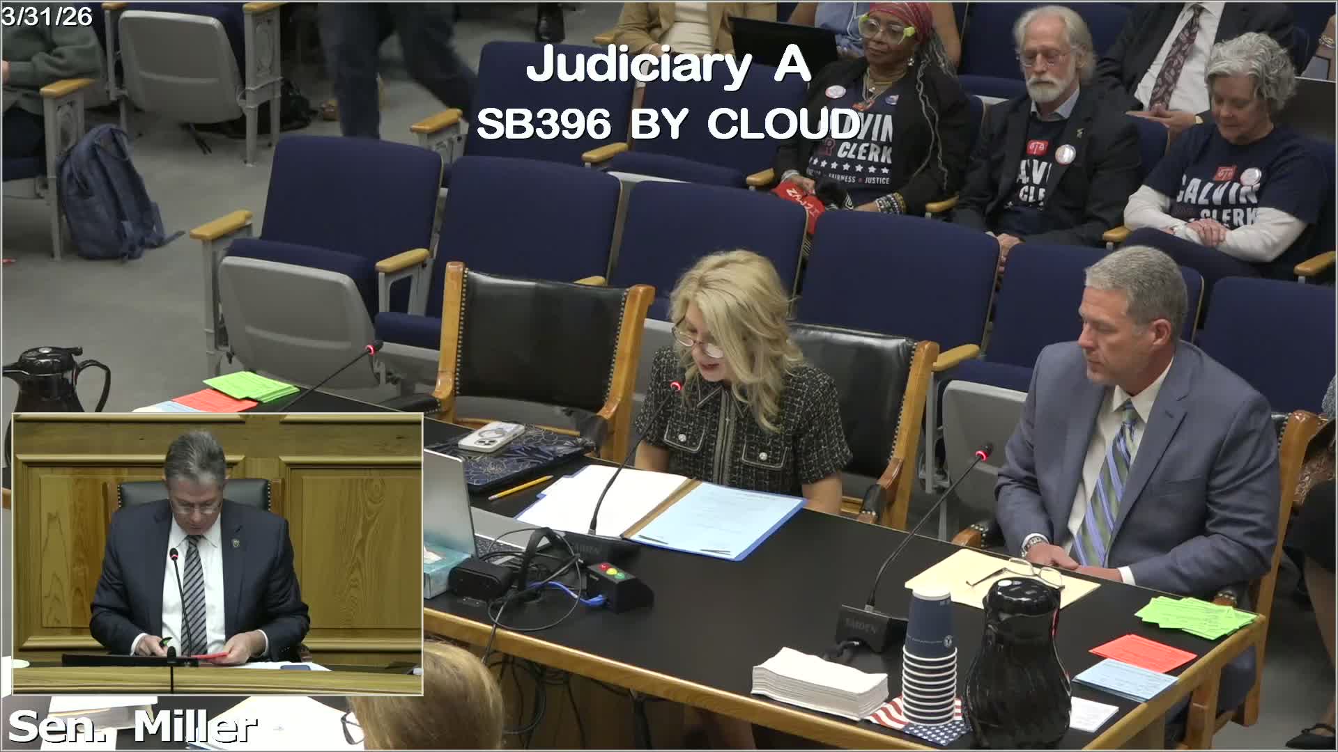 Senate Bill 396, presented March 31 by Senator Cloud, would permit children in the custody of the Office of Juvenile Justice to participate in some required review hearings via secure video conference rather than being physically transported to the committing court. Senator Cloud offered an amendment—adopted by the committee—that preserves an in‑person requirement every six months while allowing virtual hearings more frequently if the court and stakeholders agree.