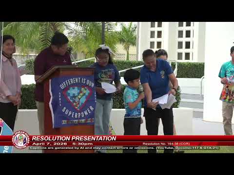The Committee on Rules of the Guam Legislature adopted Resolution No. 164-38 on behalf of the people of Guam to recognize April 2026 as Autism Awareness Month and to commend the Autism Community Together (ACT) organization for its awareness and support activities. Senator Sean Gumatautow, who sponsored the resolution, opened the event and read parts of the measure before staff readers finished the text.
