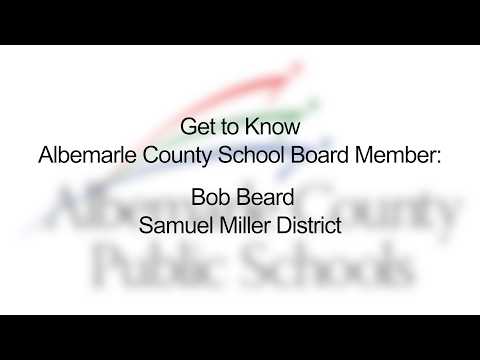 Bob Beard introduced himself as the new Albemarle County School Board member representing the Samuel Miller District, saying he has lived in Albemarle County for almost 25 years and lives in Ivy. "My name is Bob Beard," he said as he opened his remarks.