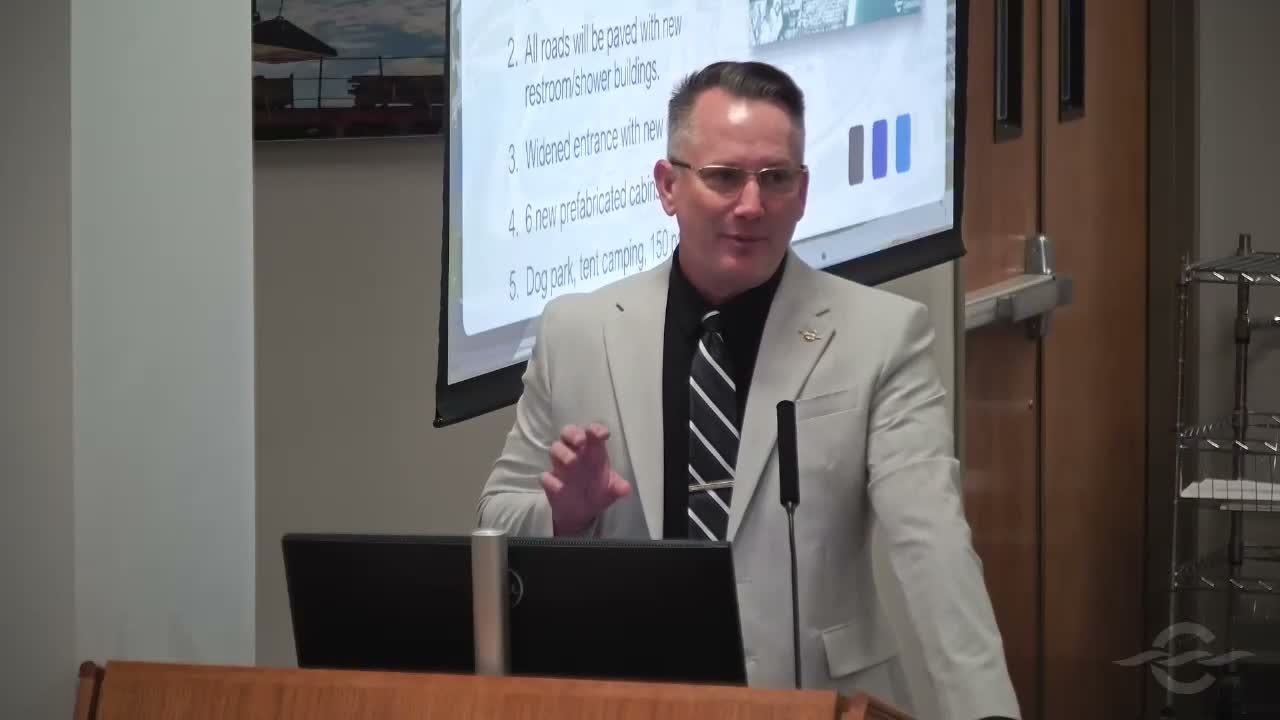 Staff said the combined recent and proposed recreational investments total roughly $25 million. The Jetty Park master plan concept calls for paved internal roadways, renovation of all 138 RV camping pads with new concrete pads and utility hookups, expanded parking, new bathhouses and an improved entrance for emergency egress. Staff said the concept budget for Jetty Park is nearly $14 million; the plan is at concept design and will move to full design and a bidding process once details are finalized.