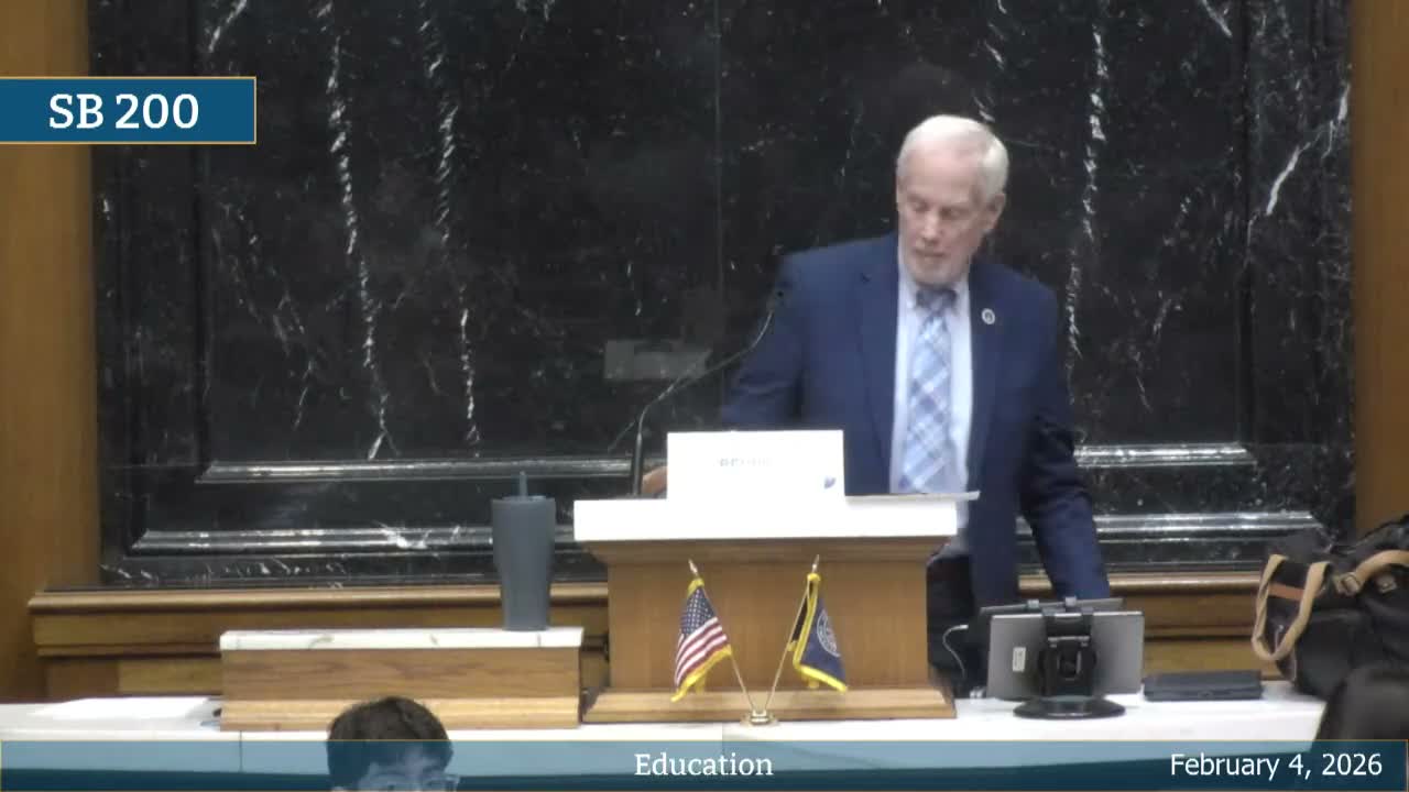Senate Bill 200 would ask school corporations to have certain out-of-state contracts governed by Indiana law and expand access for federally recognized patriotic organizations to speak in schools twice a year; scouting groups urged passage, while some members raised commerce- and fiscal-related questions about choice-of-law language.
