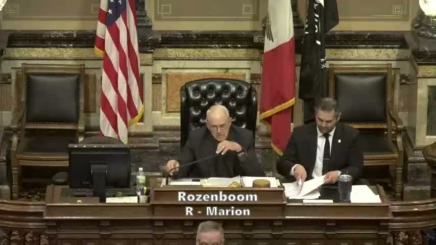 In a single floor session the Senate adopted multiple amendments and passed a package of bills spanning administrative rules, probate (prenups), public-investment priorities, public-construction notice, CDL English proficiency, vehicle salvage title processes and more; roll-call tallies are included.