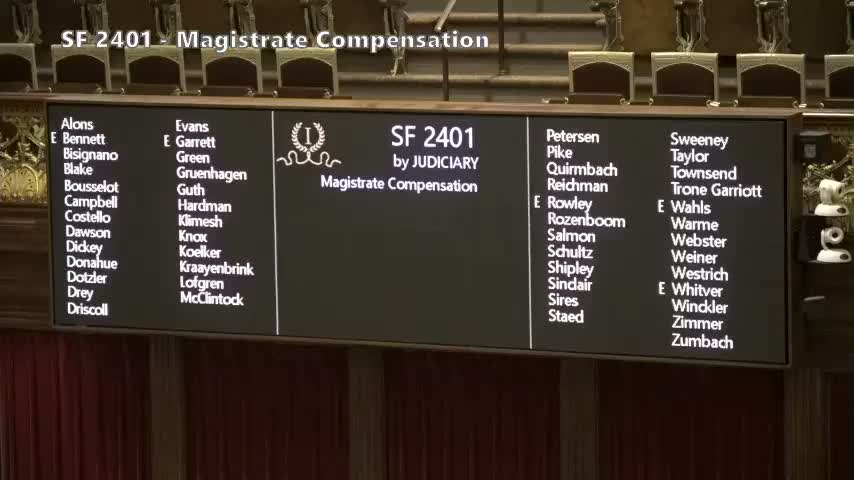 The Senate substituted House File 2706 to move magistrate assignments from a county model to a judicial‑district model, with a provision giving current magistrates right of first refusal. Opponents warned the change could reduce local access to justice and raise administrative costs; supporters said it modernizes workforce management. The bill passed on roll call.