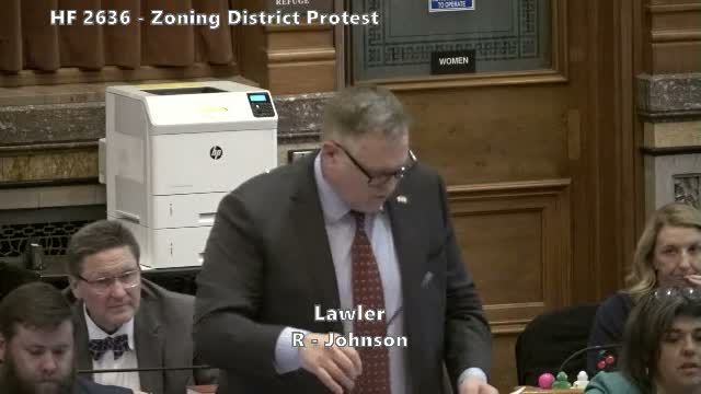 On a recorded vote the House passed Senate File 2378 (conforming to House File 2636), reducing the ability of neighbors to use petition thresholds to overturn local zoning decisions; supporters said the bill protects property rights and housing supply while opponents said it removes a homeowner’s petition tool.