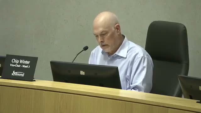 The Edmond Planning Commission voted against a motion to approve a rezoning request from single-family to a planned unit development for about 2 acres at Covell and Bryant, a decision the chair recorded as a failed motion during the April 7 meeting.