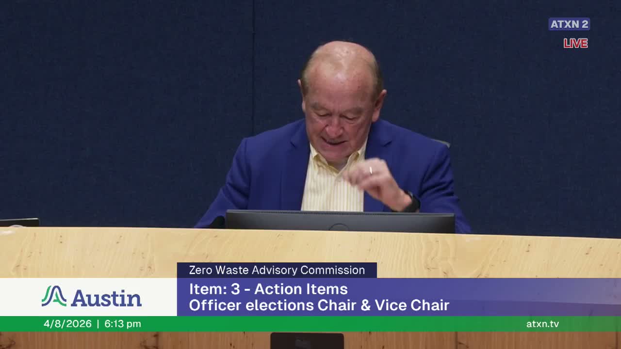The Austin Resource Recovery commission voted unanimously to recommend amended administrative rules that limit Hornsby Bend residential drop‑offs to 6 cubic yards per person per day, remove a base subsidy and authorize on‑site fees planned to begin in October 2026 as part of the FY2027 budget.