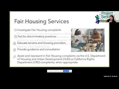 On national-origin and language-based issues, the presenter noted that practices tied to accent, name or assumed immigration status can be discriminatory and clarified that “en California no es ilegal que un proveedor de vivienda le alquile a una persona” independentemente de su estatus migratorio. She also discussed sexual harassment and domestic violence as housing-related harms and said documentation such as police reports, agency letters or protection orders can support a claim.