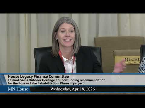 Chair McDonald convened the House Legacy Committee for an informational hearing on the Roseau Lake Rehabilitation Project, which the Lessard‑Sams Outdoor Heritage Council has recommended for inclusion in the council’s 2026 Outdoor Heritage Fund package.
