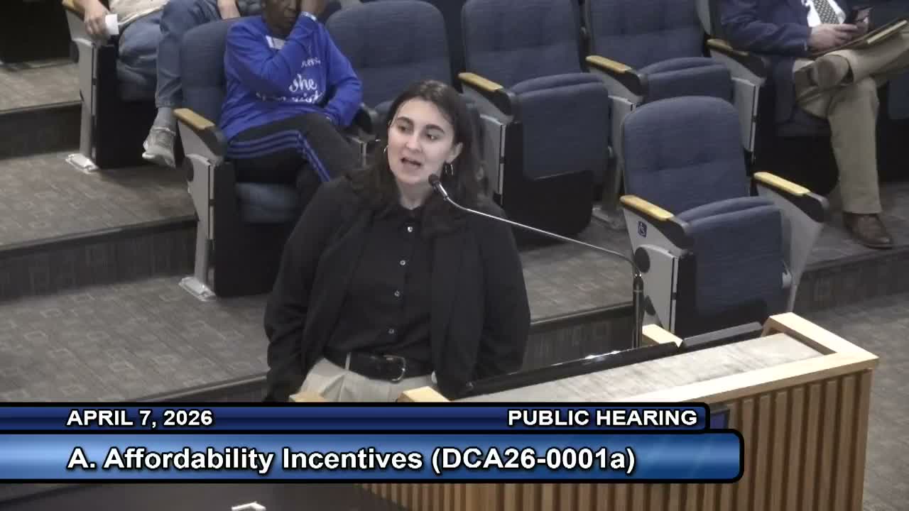 Leah Atkinson, housing programs coordinator, summarized staff-recommended amendments to the Denton Development Code affordability-incentive program. Key changes the council adopted include removing the city's right of first refusal for participating developments (staff said restrictive covenants already protect affordability), removing scaling qualifications and establishing a 15 percent minimum of units designated affordable to qualify for incentives, revising rental affordability targets to focus on units "affordable for Denton" (preserving 30/50 percent AMI tiers), increasing the homeownership target level to 80 percent AMI (while allowing lower thresholds when other funding requires them) and reducing the affordability period for homeownership projects from 30 years to 5 years to align with other programs.