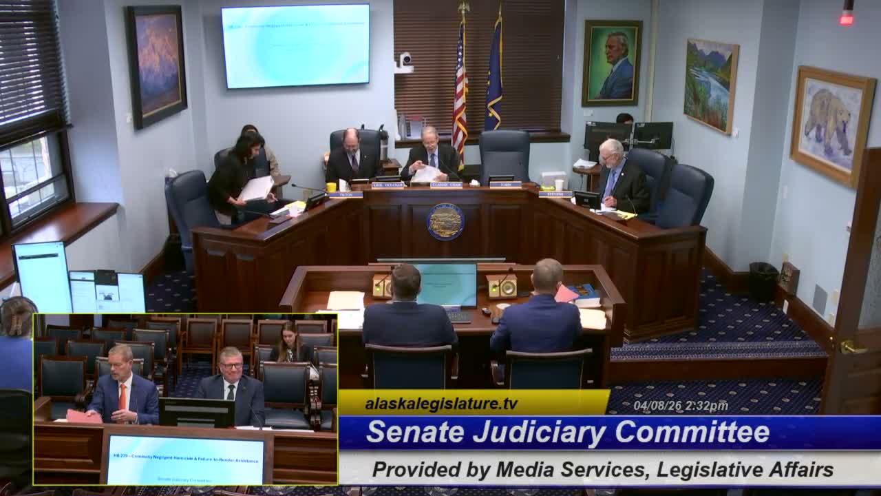 Committee members questioned whether increased maximum penalties would deter hit-and-run behavior absent public education and outreach. Senator Stevens asked whether Alaska’s Good Samaritan protections expose would-be helpers to lawsuits; Kopp and staff said Alaska has robust Good Samaritan defenses but could not categorically prevent any suit. Several senators asked whether the bill’s elevation should apply even when the driving itself did not meet criminal-negligence standards; Chief Case said from a law-enforcement perspective it would be preferable to have a statute making failure to stop criminal regardless of whether the initial driving was negligent, though the current bill ties the elevation to criminally negligent driving.