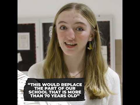 The presenter framed the bond as modest for homeowners but substantial for students, saying, "At an estimated cost of $12.50 per month for the average homeowner, this proposal will allow us to build a new 2 story wing with larger classrooms, updated science labs, and flexible modern spaces where students can work together." The presenter added that the bond would replace portions of the building that are "more than 70 years old" and would include "a new student media center designed for studying, research, and group work."