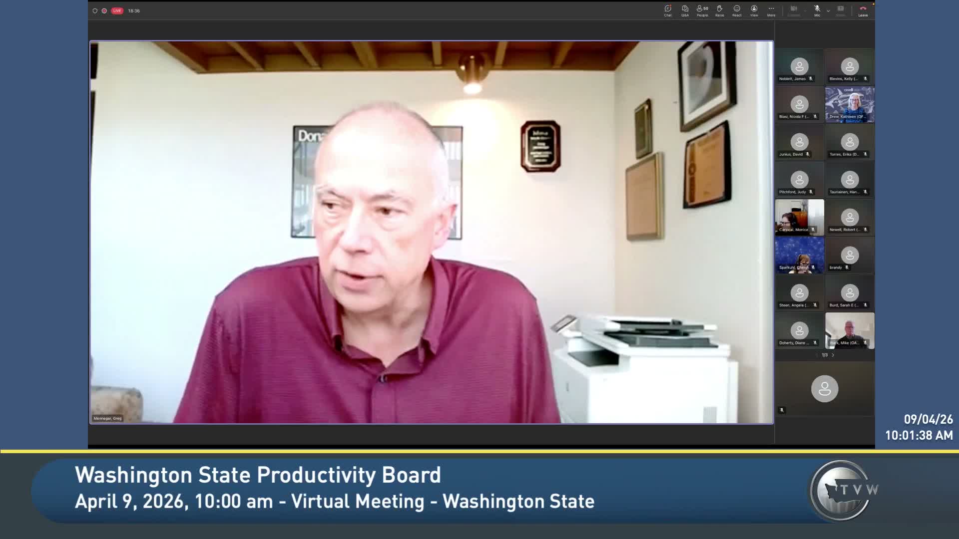 At a Productivity Board coffee klatch on April 9, Office of Financial Management Chief of Staff Kathleen Drew said employee suggestions have produced more than $11 million in savings, outlined common inefficiencies (paper processes, duplicate phones, end-of-biennium spending) and described OFM efforts to consolidate space and improve services.