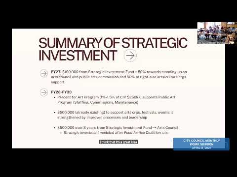 The project remains in the community engagement and fundraising stage; presenters urged continued public participation through the exhibition, upcoming “house parties” and the project website. The council did not take a final vote on siting or acceptance during the April 8 work session; staff said they would bring formal adoption or location actions back to the council for later consideration.