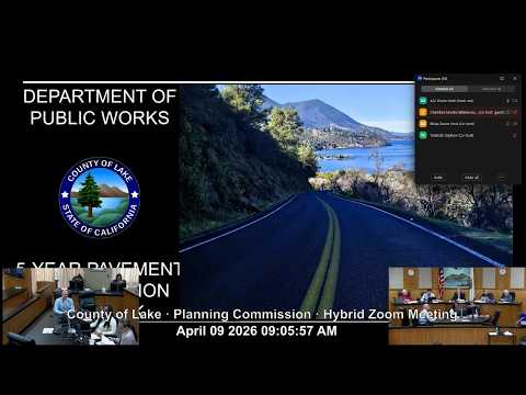 Interim Public Works Director Lars Ewing presented the Planning Commission with a five-year pavement preservation plan and an overview of how Lake County maintains its roads, saying the county seeks to reverse a declining Pavement Condition Index (PCI) that measured 34 in 2022.